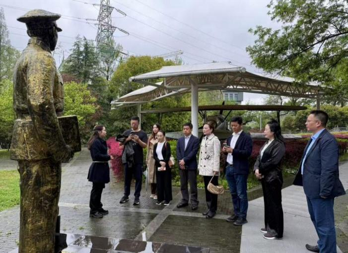 一行人在工作人员陪同下参观展厅,回顾中国空军与国际援华空军并肩抗敌的峥嵘岁月,随后在抗日航空烈士纪念碑前举行庄重凭吊仪式,全体人员肃立默哀、瞻仰纪念碑,缅怀英烈。