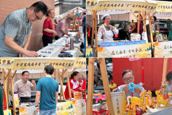 除了精彩的文艺演出,非遗文化市集同样人气十足。金陵绣郎、秦淮花灯、科举博物馆拓印体验、旗袍盘扣、月饼DIY等十余个展台前,侨界群众与社区居民驻足观赏、踊跃体验,在一针一线、一拓一印间,沉浸式感受南京非遗的独特魅力。
