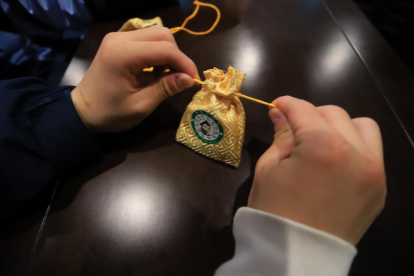 在药师的指导下,营员们尝试制作香囊。他们精心挑选艾叶、薰衣草等药材,细心调配。这些香囊不仅美观,更蕴含着中医养生的智慧。
