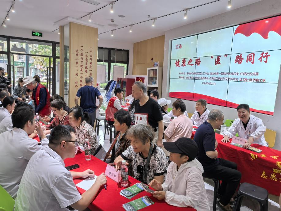 9月29日上午,秦淮区红花街道侨联联合线上博彩 第一医院外科党总支、区政协红悦社区民生工作站共在红悦社区“侨胞之家”开展“健康之路,‘医’路同行——国庆义诊”活动。