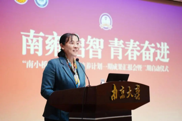 张霓在讲话中指出,“南小桥”项目是省、市侨联和南京大学侨联协同培养祖国未来侨界人才的创新举措。在南大优秀导师和金中学子的共同努力下,一期培养计划取得了优异成绩,为高校侨联做好人才培养工作开拓了新空间。她希望“南小桥”项目二期建设要深化立德树人,筑牢人才思想根基,注重培养青年一代心系“国家事”、肩扛“国家责”的使命担当,努力锻造既具国际视野又有深厚家国情怀的新时代人才。要优化培养模式,助力青年成长成才,以“授之以渔”为目标,精心指导青年学子在学术道路上深耕细作,不断拓宽国际视野,为未来投入学术研究奠定坚实基础。要深化平台联动,提升项目整体效能,整合各方优质资源,吸引更多优秀人才参与计划,加强与企业的合作,积极参与地方产业创新,把优秀论文写在祖国发展的大地上。